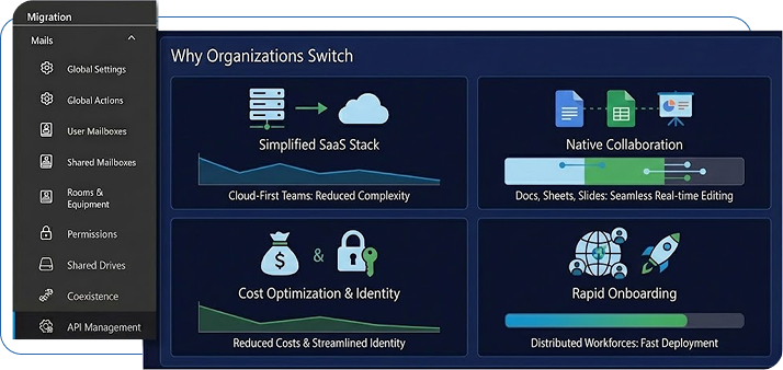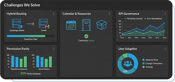 Exchange, OneDrive, SharePoint and Teams migrated cleanly into Gmail, Drive and Google Chat with minimal downtime.