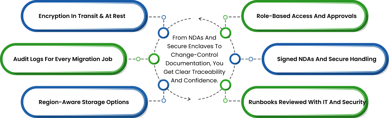 Every engagement is built with controls to satisfy IT, InfoSec, and audit stakeholders. We align to your governance posture without slowing down delivery.